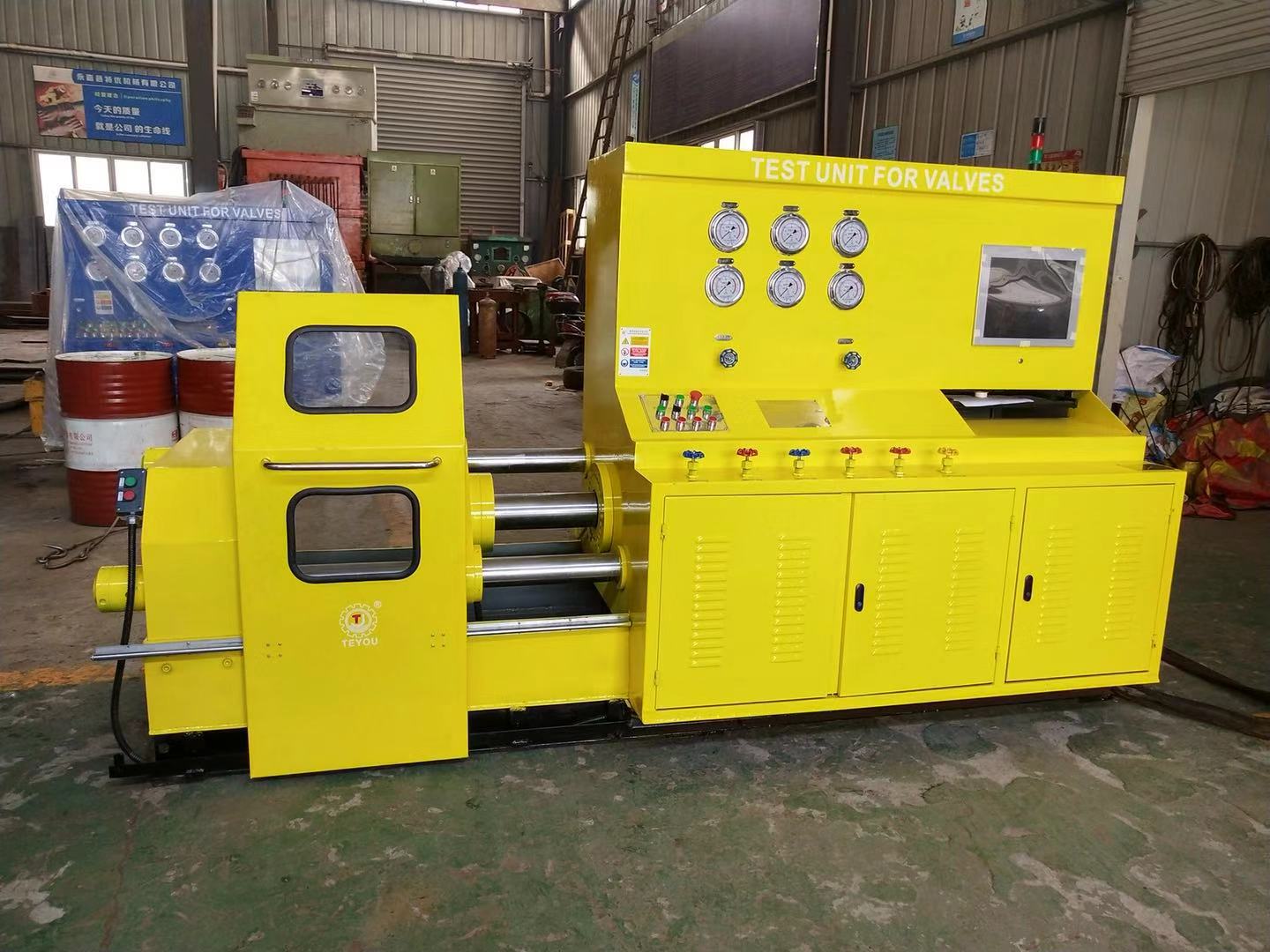由于項目涉及重要工況閥門試壓檢驗和二次檢測,項目組委會 邀請國內優(yōu)良業(yè)績和資質合格供應商(生產廠家),標委會成員技術部、設備部、采購部經過廠家資質能力篩選和技術論證,最終選用有中石油系統(tǒng)合作供應業(yè)績的制造商浙江優(yōu)機機械科技有限公司的新型改進型頂壓式JWT型閥門試驗臺,檢測范圍涉及法蘭、焊接、絲扣等連接閥門,口徑范圍2”-24”,壓力范圍2.5-63.0Mpa此次中標產品已通過浙江省工業(yè)新產品鑒定,也是發(fā)明專利產品,專利號:ZL 2016 1 0240324.1 主要針對高要求檢測單位。主要檢驗球閥、截止閥、止回閥、閘閥等。是目前國內技術領先的閥門試驗設備,該產品先后中標中石油大慶油田工程有限公司、中石油四川油建工程公司、中石油冀東油田工程公司等,產品憑借高精度、智能、節(jié)能、操作方便等特點,成為第三方檢測、施工安裝單位、閥門生產企業(yè)首選產品。