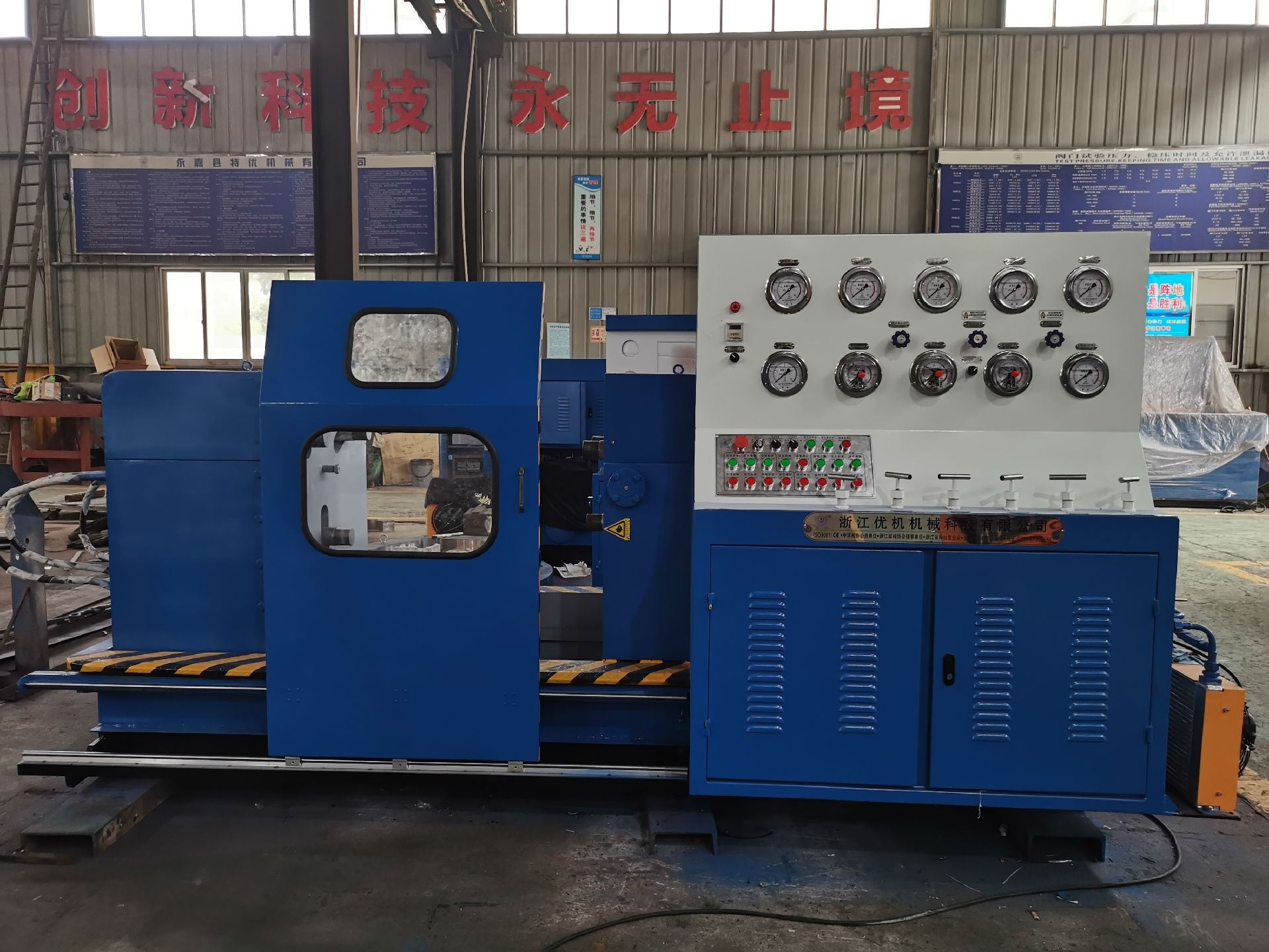 本機(jī)集機(jī)電、液壓、試壓、液體介質(zhì)貯存循環(huán)使用于一體,具有功能完善、性能穩(wěn)定、自動化程度高等特點。廣泛用于公稱通徑DNl 5-1000mm的直通式法蘭及螺紋連接各類高、中、低壓閥門的強(qiáng)度、密封和泄漏量等各項性能測試。測試介質(zhì):水、氣、油。最高密封試驗壓力 32.0MPa,強(qiáng)度48 0MPa。